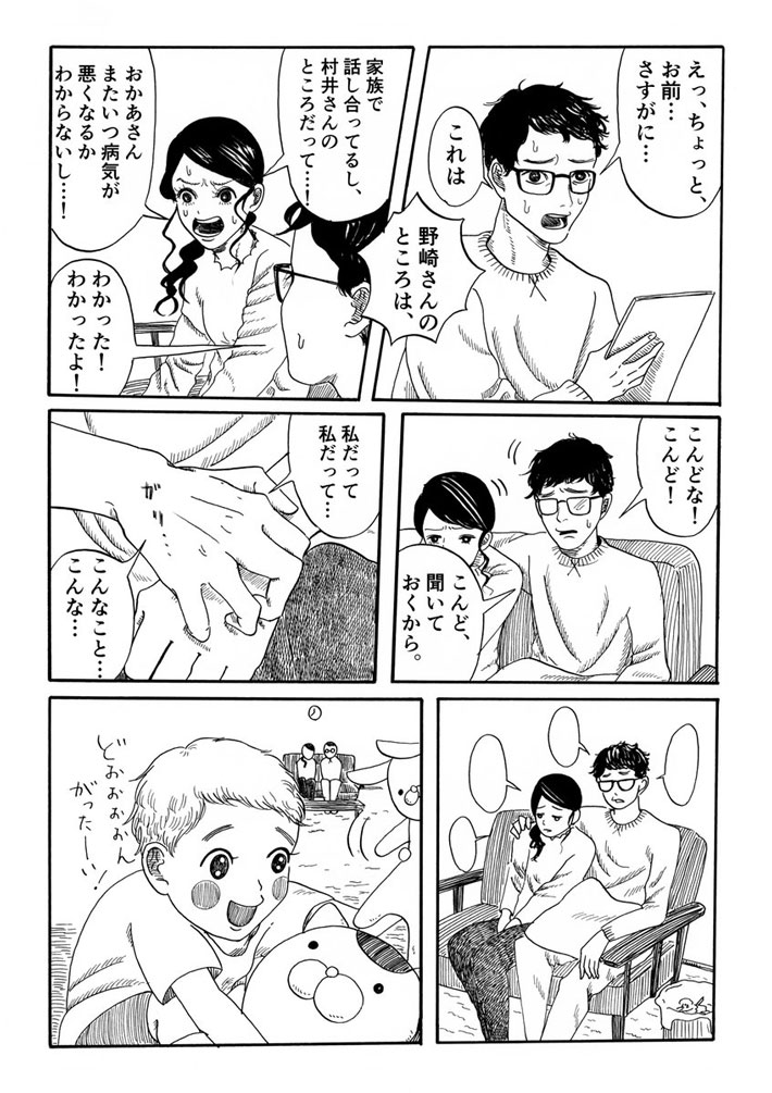息子の母親への気持ちに対して、この嫁は最低すぎると思う怒りと、「もう少し」と言う母親の姿に悲しさを感じました。